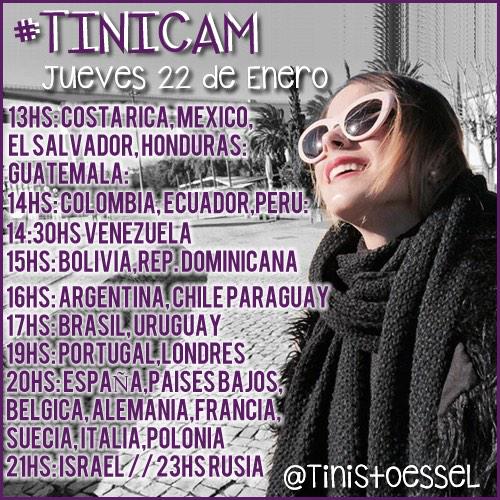 Este jueves 22 de enero #TINICAM a las 19:00 hrs de PORTUGAL 16:00hrs ARGENTINA! Fíjense los horarios de cada país! Los quiero💜